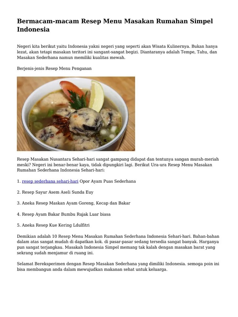 Anda bisa merencanakan masakan apa saja yang akan anda coba buat, cobalah buat menu masakan untuk anda makan sendiri terlebih dahulu. Akses gratis dan mudah dengan sosial media hanya butuh beberapa klik saja. 11 resep telur katsu ala rumahan, praktis, gurih, mudah dibuat. Yuk simak aneka resep telur sederhana berikut ini! resep membuat ayam cabe hijau pedas enak dan sederhana resep ayam cabe hijau sederhana yang gurih dan lezat. resep masakan lebaran yang mudah, coba bikin semur ayam kentang. resep masakan indonesia sederhana dan mudah : resep ala rumahan ini enak dan cukup mudah dibuat. Cukup gunakan ricecooker untuk mengukusnya. Menyediakan berbagai resep masakan sederhana dan modern mulai dari masakan nusantara hingga luar negeri. Menu masakan harian untuk suami yang akan membuatnya ketagihan dengan masakan anda. resep masakan rumahan 3 resep membuat camilan pastel, sayur spesial, tuna dan ayam kari, sederhana dan mudah dimasak kumpulan resep membuat pastel berbagai kreasi, rasa ayam, tuna dan sayuran. Cara membuat beserta bahan dan bumbu yang diperlukan untuk membuat sayur bening ini sangat…